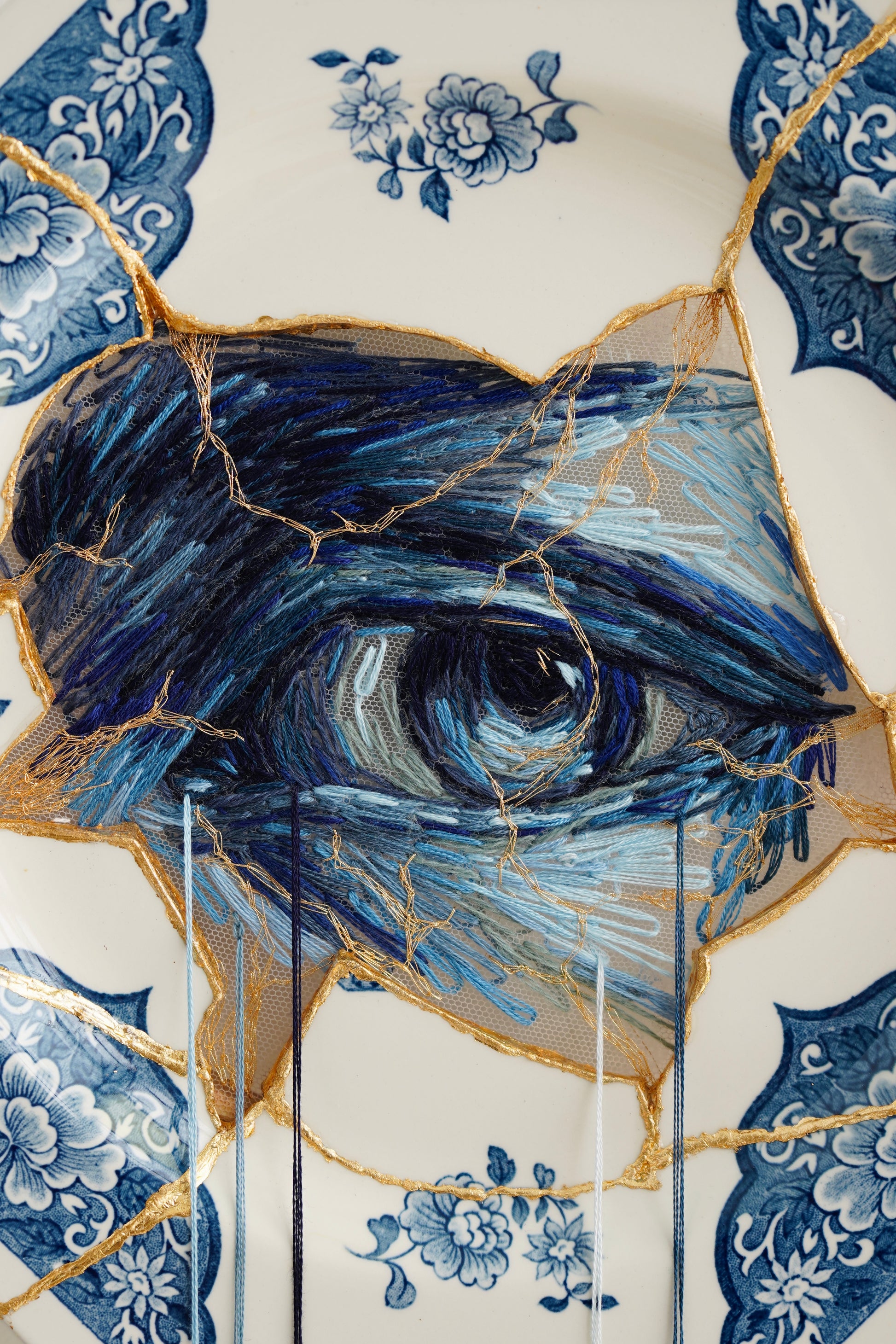 Every element of this piece — embroidery, porcelain, and gold repair — tells a story of rebirth and transcendence.
